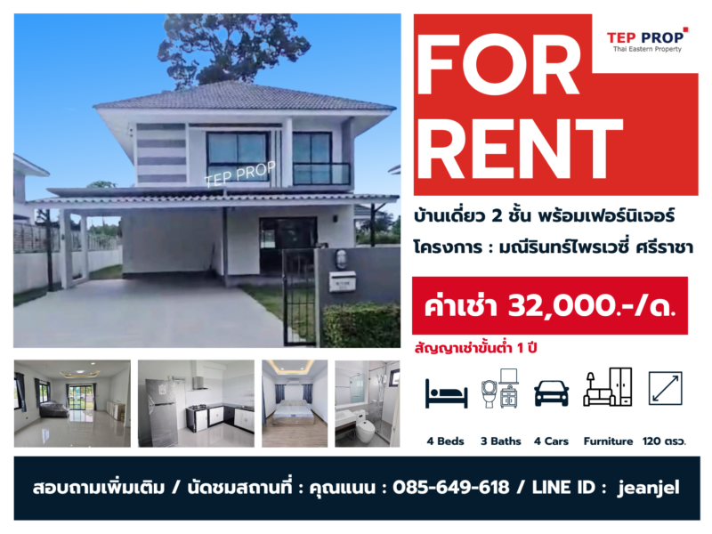 ให้เช่า บ้านเดี่ยว คันทรี่โฮม 2 ใกล้เจปาร์ค บ้านเช่า 📣ให้เช่าบ้านเดี่ยวศรีราชา พร้อมเฟอร์นิเจอร์และเครื... อ่านเพิ่มเติม เช่า 32,000 /เดือน หมูบ้านคันทรี่โฮม 2 63 ตรว. 2 ชั้น 3 ห้องนอน 3 ห้องน้ำ 2 ที่จอดรถ